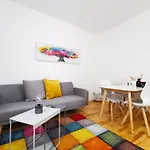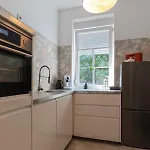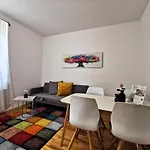 Die Unterkunft verfügt über einer Sitzecke und einer Essecke mit Parkettbodenbelag und Möbeln wie einem Sofa. Außerdem stehen den Gästen ein Flachbildfernseher mit Satellitenkanälen und ein Fernsehen mit mehreren Kanälen sowie Sicherheitseinrichtungen wie Rauchmelder zur Verfügung. Im Apartment sorgen eine getrennte Toilette, eine Badewanne und eine Dusche für Ihren Komfort. Des Weiterem gibt es einen Haartrockner, einen Wäschetrockner und Toilettenartikel im Badezimmer.